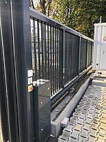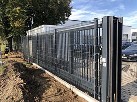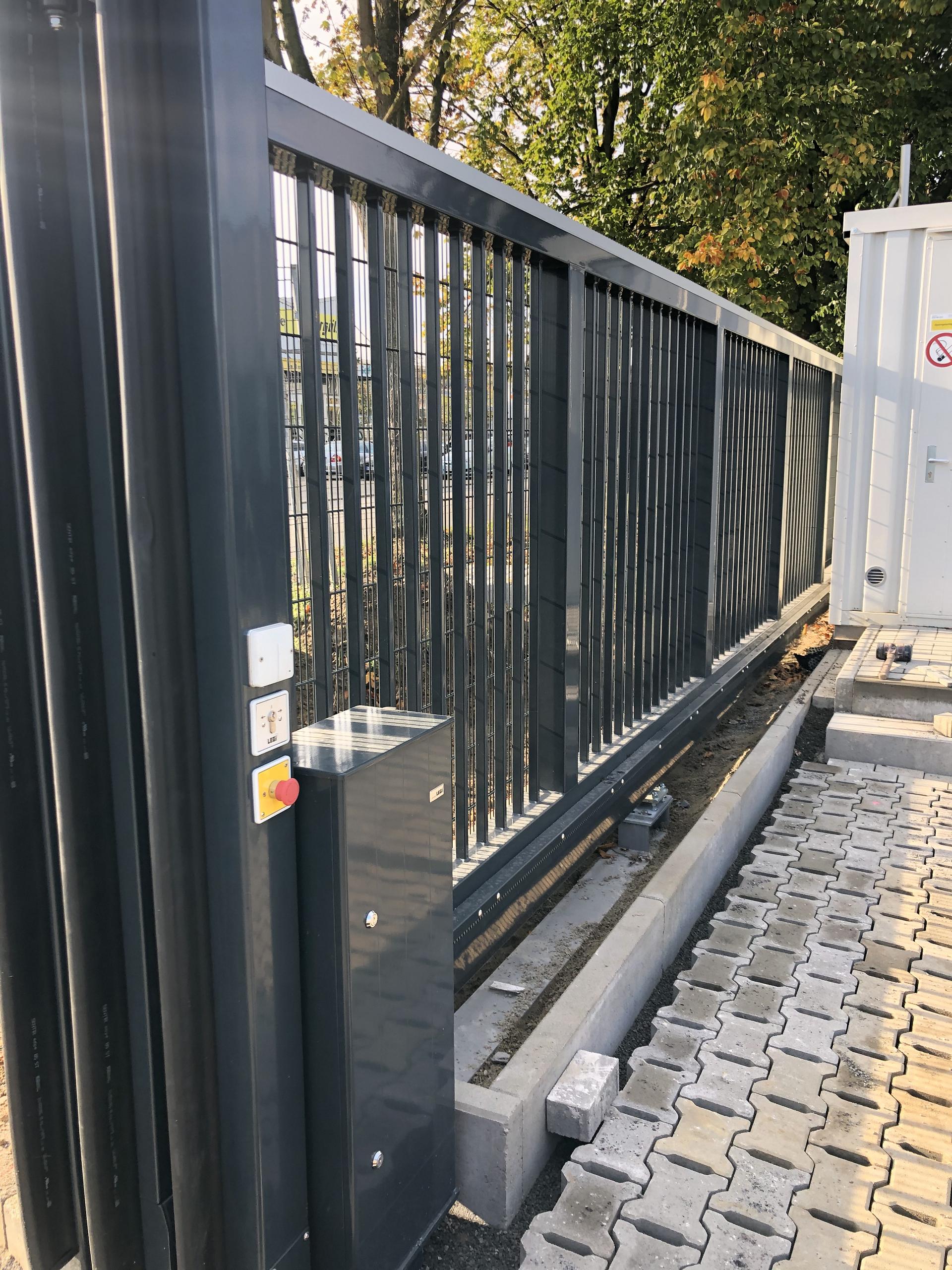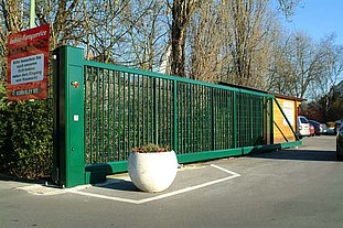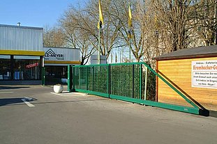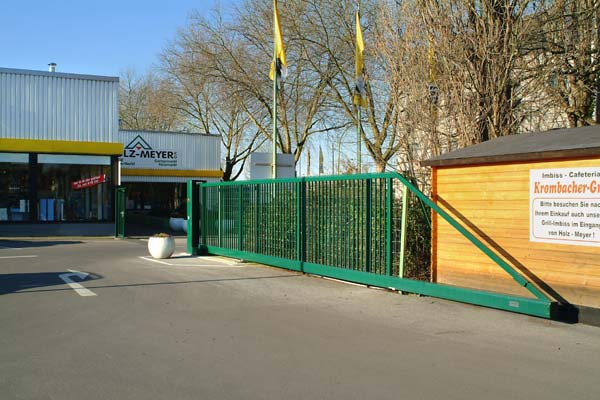 Schiebetore sind immer dort ideal einsetzbar, wo große Durchgangsbreiten schnell und sicher zu überbrücken sind. Die manuelle Grundausstattung unserer Schiebetore kann durch einen im Führungspfosten integrierten elektromechanischen Antrieb ergänzt werden.